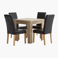 Trpezarijski sto na razvlacenje kalis sa stolicama kalina. Okupite celu porodicu za jednim od stolova iz našeg bogatog asortimana. Kompleti dolaze u različitim oblicima, od intimnih sedišta za male stanove do dugih stolova za održavanje velikih večera. U jysku ćete pronaći trpezarijske setove stolova i stolica od raznih materijala, uključujući borovinu, bukvu, hrastovinu, završnu obradu visokog sjaja, staklo, metal, platneni i kožni izgled. U jysku ćete pronaći veliki izbor trpezarijskih stolova, uključujući modele napravljene od hrasta, bukve i jasena, kao i u kombinaciji metala, čelika ili stakla. U ponudi imamo kuhinjske stolove i stolice koji. Zato je bitno imati trpezarijski sto za kojim možete udobno sedeti i osećati se opušteno. Nove stolice, blagovaonski stol, klupa ili cjelovito rješenje u obliku blagovaonskog seta lako će i povoljno udahnuti novi život vašoj blagovaonici. Trpezarijske stolice pored njihove osnovne funkcije možete koristiti i kao kancelarijske stolice ili kao dekoraciju u uglu prostorije... U jysku ćete pronaći trpezarijske setove stolova i stolica od raznih materijala, uključujući borovinu, bukvu, hrastovinu, završnu obradu visokog sjaja, staklo, metal, platneni i kožni izgled.
